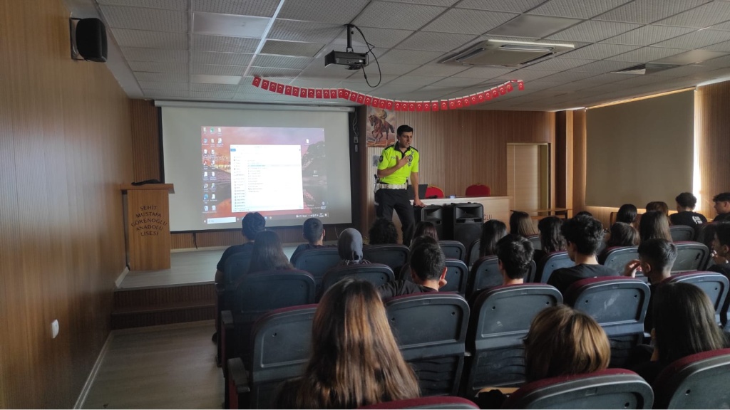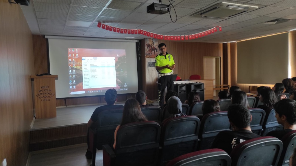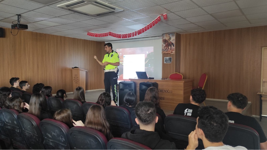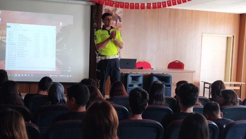 Adana Emniyet Müdürlüğü, Trafik Şube Müdürlüğü tarafından Polis Memuru Ertuğrul KÖKSAL tarafından öğrencilerimize "Trafik Dedektifleri Projesi" kapsamında trafik kuralları, koruyucu tedbirler ve yaya güvenliği hakkında eğitim verilmiştir.